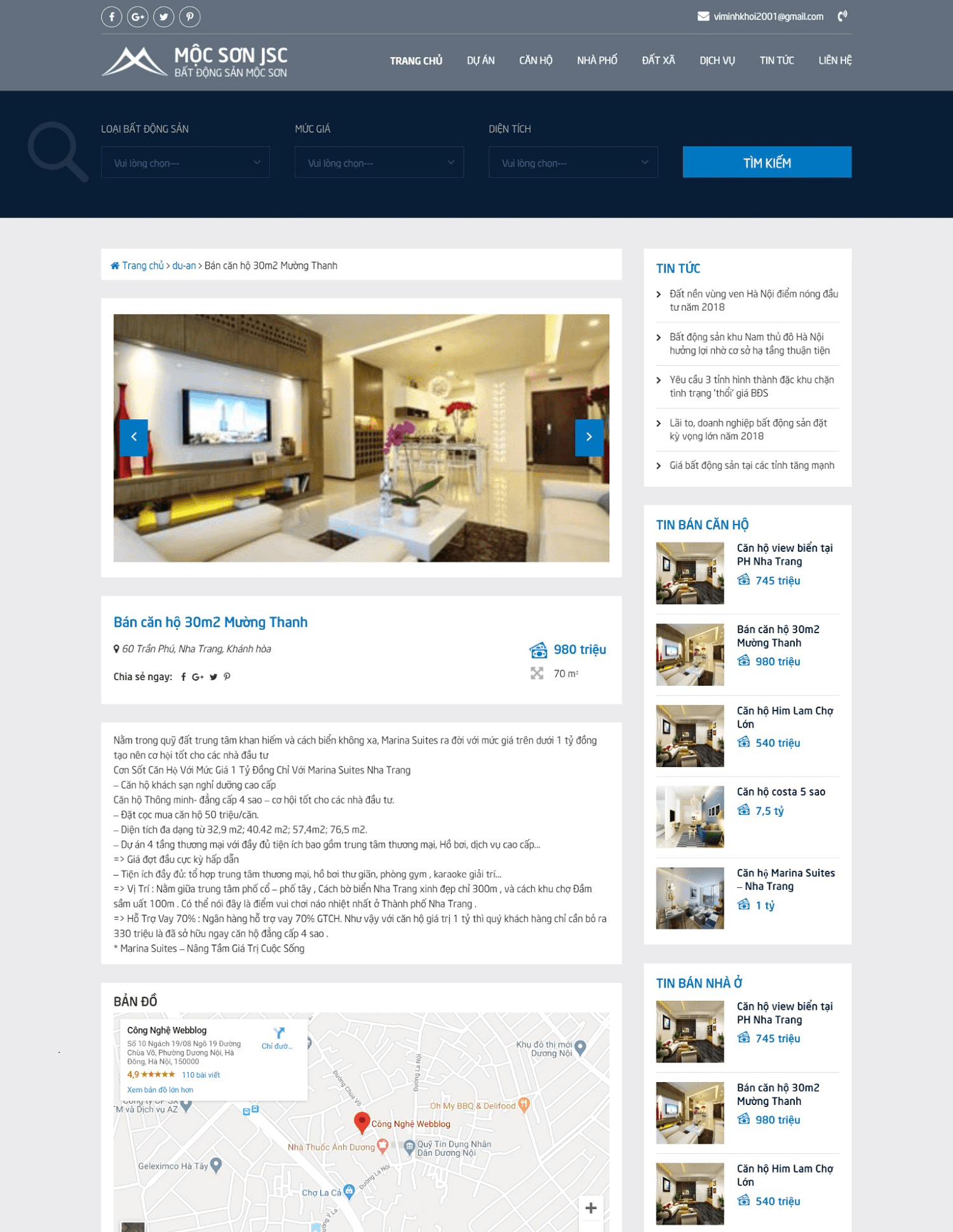 Giao diện website bất động sản này được thiết kế đẹp mắt, chuẩn seo, tối ưu tốc độ, phù hợp với các website về bất động sản, du lịch, tour, cho thuê nhà,..., bởi thiết kế phong cách hiện đại làm nổi bật được dịch vụ và sản phẩm....